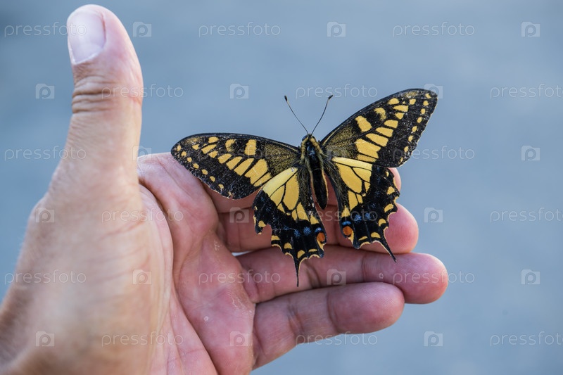 Бабочка махаон на человеческой руке