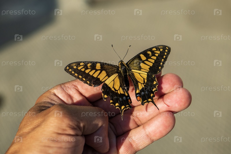 Бабочка махаон на человеческой руке