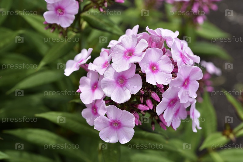 Светло-розовые цветки флокса в летнем саду. Полемониевые