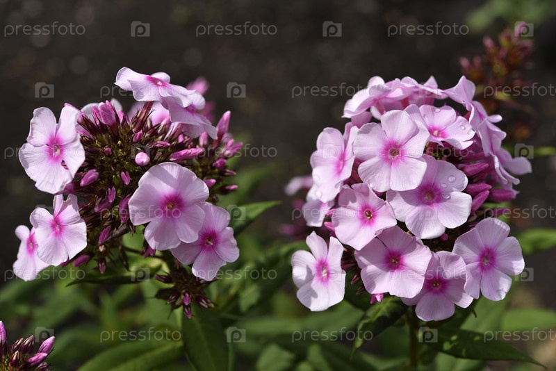 Светло-розовые цветки флокса в летнем саду. Полемониевые