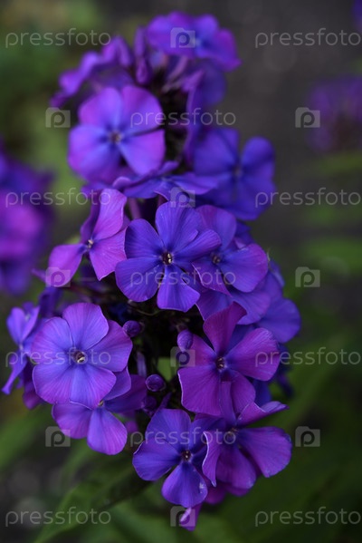 Темно-синие цветы флокса в летнем саду. Полемониевые