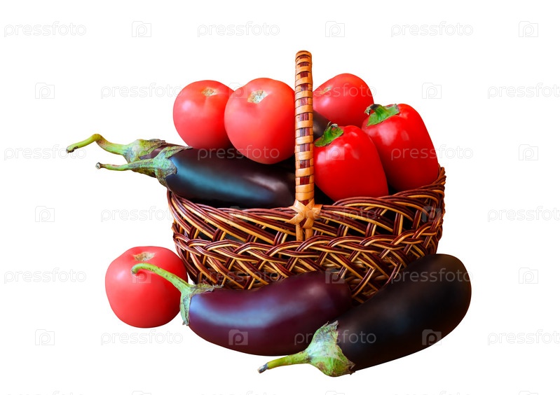 Свежие овощи в корзине на белом фоне