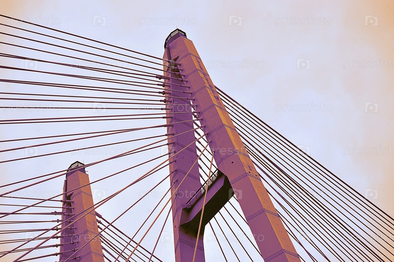 Вид на вантовый Обуховский мост с набережной Невы