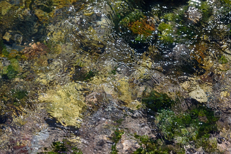 Текстура дна реки через воду - галька и грязь