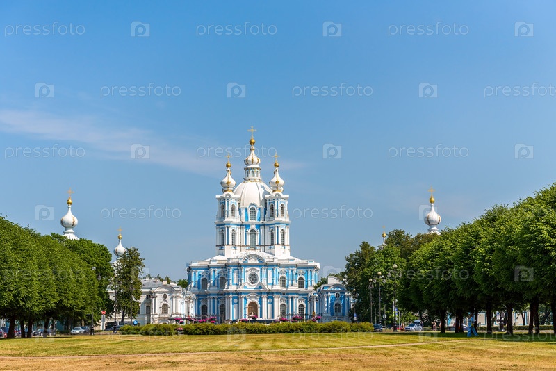 Россия, Санкт-Петербург, май 2023 года: Смольный собор в Санкт-Петербурге летом