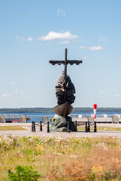 Россия, Санкт-Петербург, май 2023 г.: Памятник монаху Арсению на острове Коневец в Ладожском озере