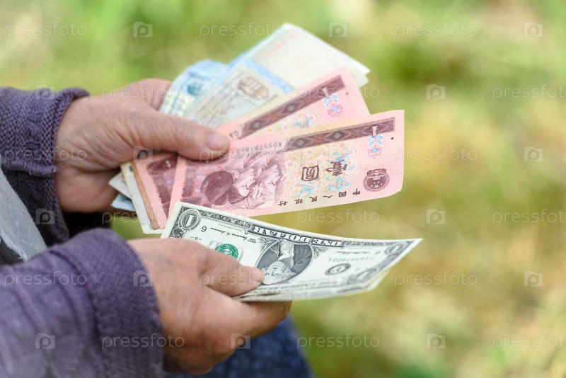 Старуха рассматривает банкноты - руки и деньги крупным планом