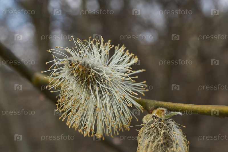 Весна.Ива (лат. Salix) цветет, серьги соцветия распустились
