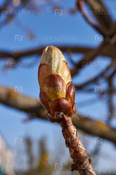 Весна. На городской площади распускаются почки каштана
