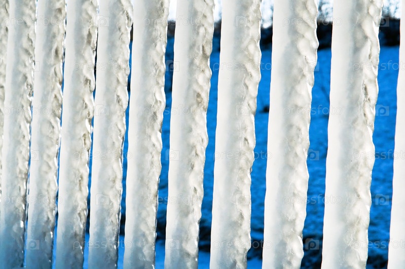 Металлический забор покрыт льдом, зима на Балтийском море, обледенение на набережной, пирс во льду