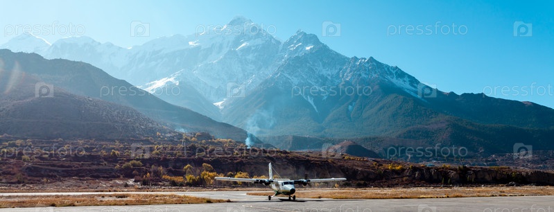 Легкий пассажирский самолет приземлился в аэропорту Джомсом в Гималаях рано утром