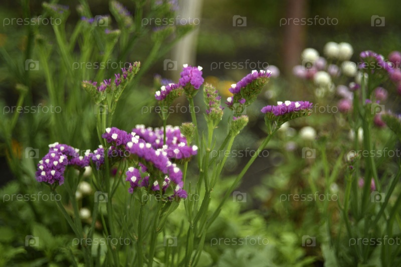 Сине-красные цветы Limonium vulgare в летнем саду