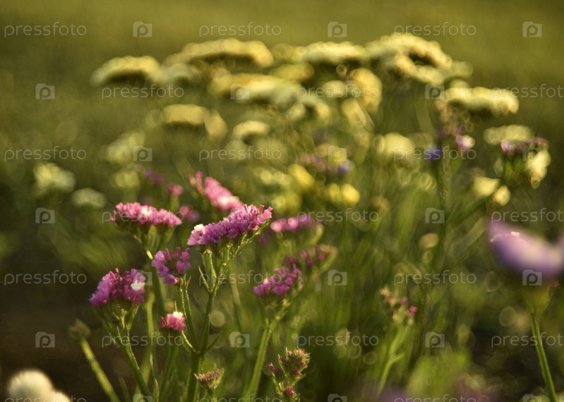 Желтые цветы Limonium vulgare в летнем саду