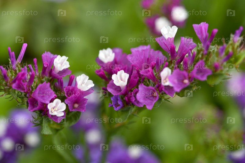 Сине-красные цветы Limonium vulgare в летнем саду
