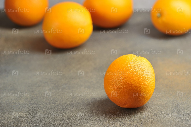 Оранжевый цвет спелых апельсинов на сером фоне