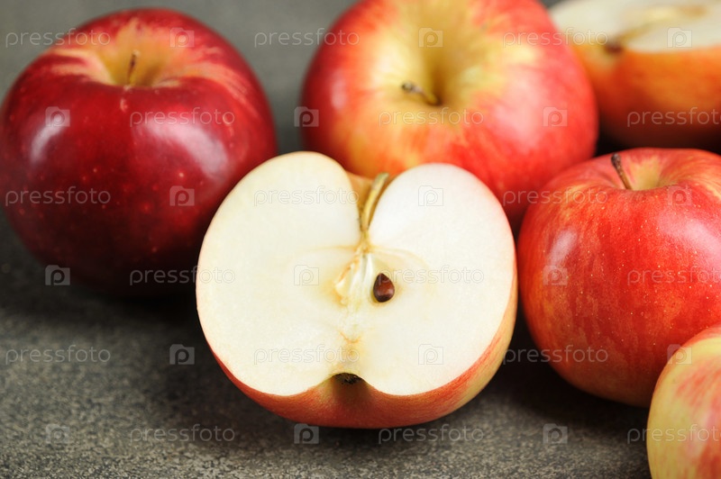 Половина красного яблока. Яблоки на сером