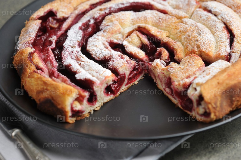 Вишневый пирог на тарелке