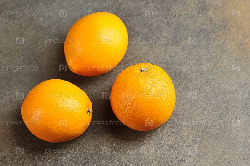 Оранжевый цвет спелых апельсинов на сером фоне