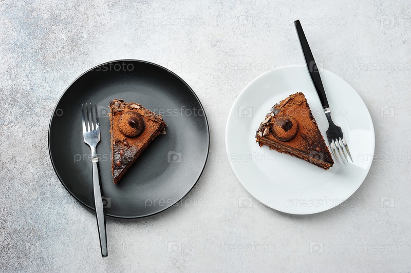 Черно-белое - две тарелки с кусочками торта
