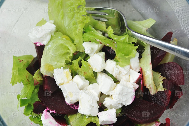 Салат с сыром фета, свеклой и орехами