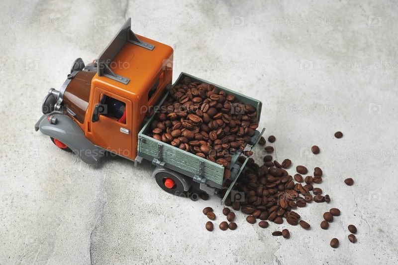Кофейные зерна в игрушечном самосвале