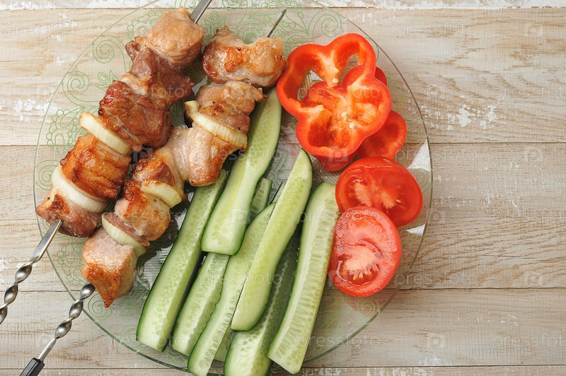 Приготовленный шашлык из свинины на шампурах – с луком