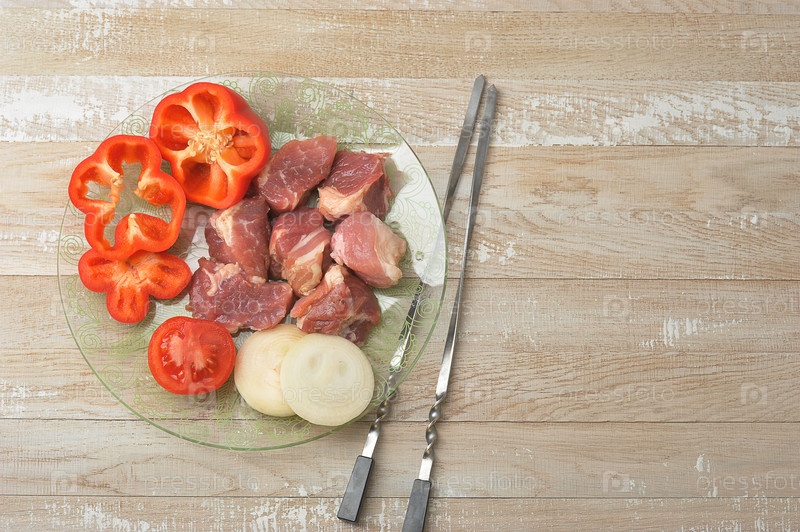 Сырое мясо для приготовления шашлыка — нарезать кусочками