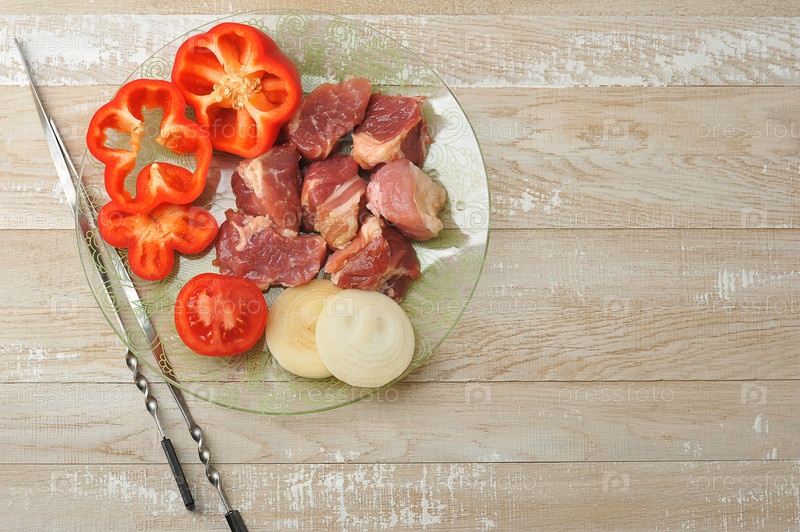 Сырое мясо для приготовления шашлыка — нарезать кусочками