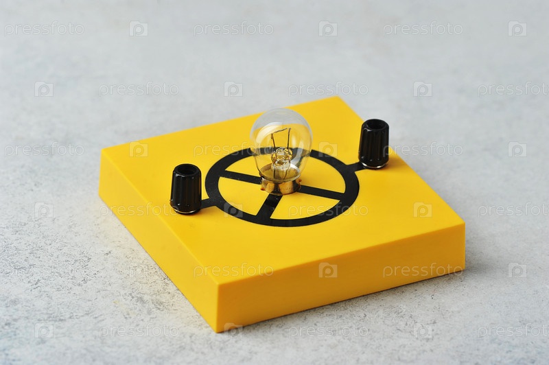 Лампа накаливания на желтой подставке – оборудование для урока физики
