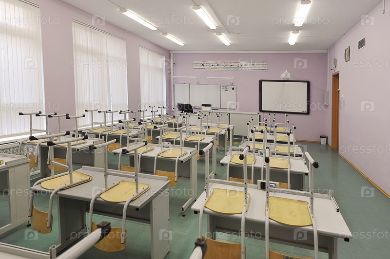 Класс без учеников - учебный класс с учебными столами и перевернутыми стульями