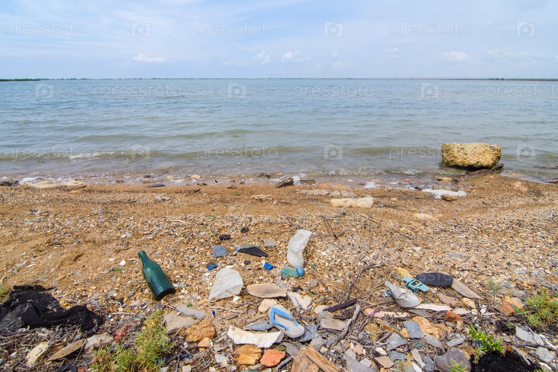 Мусор на берегу озера. Экологическая проблема