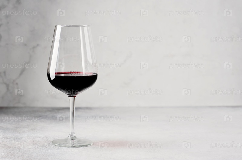 Бокал на длинной ножке с красным вином на сером фоне