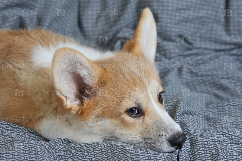 Щенок вельш корги пемброк лежит