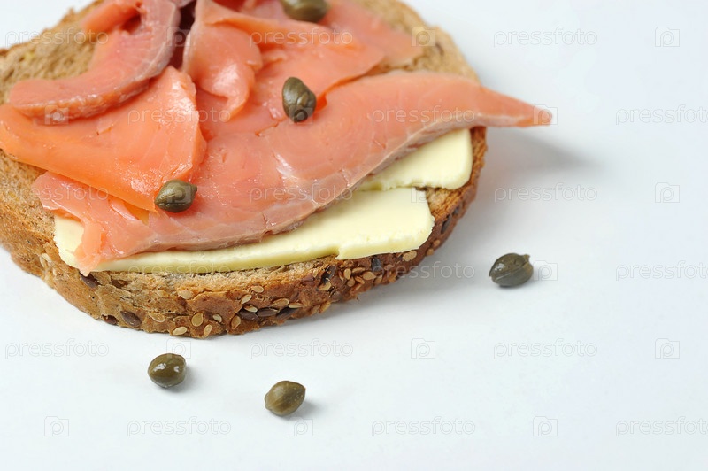 Сэндвич с хлебом и маслом, лососем и каперсами