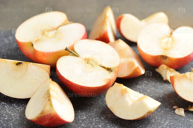 Нарезанные красные яблоки на доске