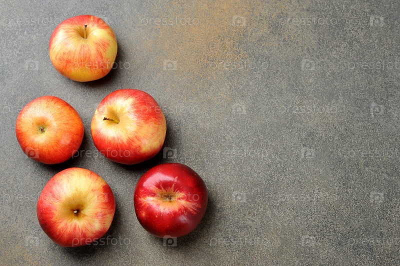 Целые красные спелые яблоки на сером фоне