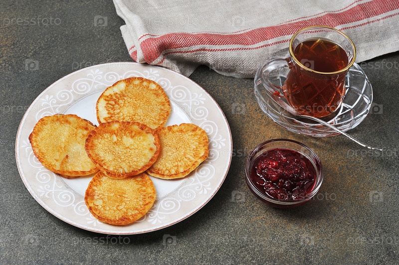Чай с домашними блинчиками и вареньем