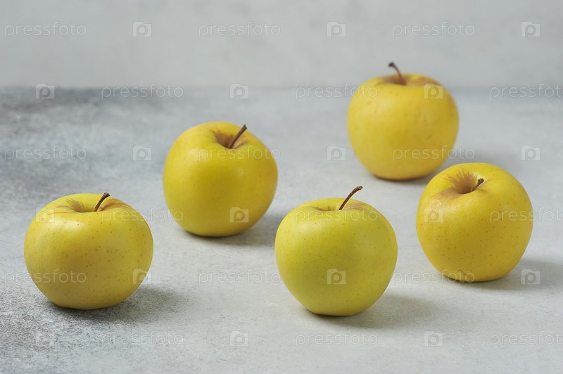 Группа яблок на сером фоне - желтые яблоки