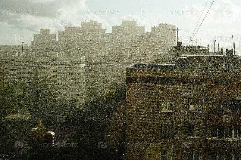 Сильный летний дождь в городе