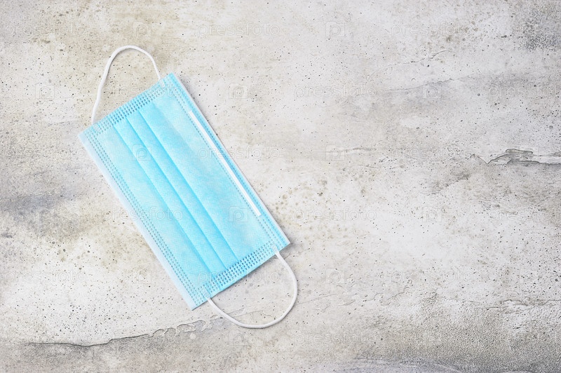 Синяя защитная маска на сером бетоне