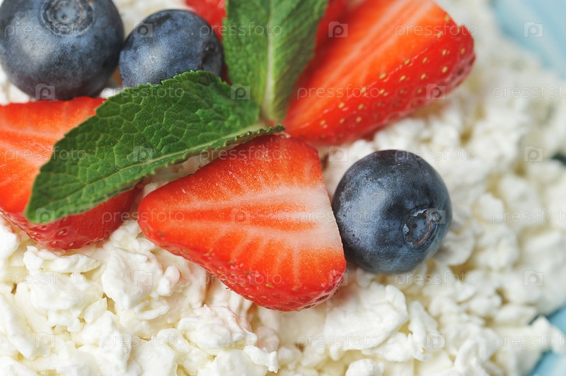 Творог и ягоды - черника, клубника и мята с творогом