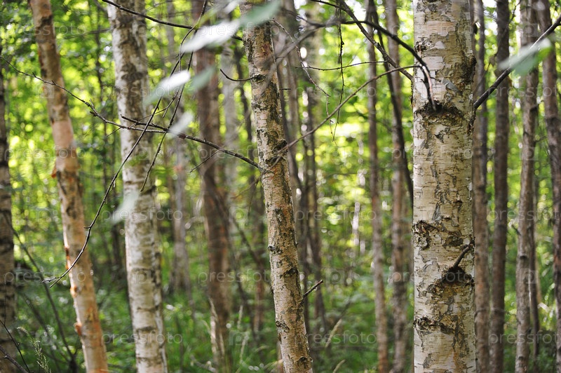 Абстрактный фон леса - стволы деревьев и листья в летнее время