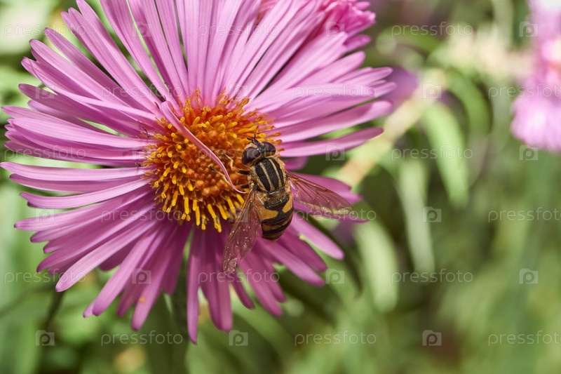 Муха собирает с цветков нектар и пыльцу. Осень