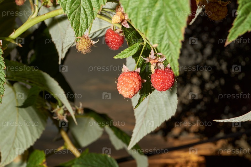 Ягоды малины. На садовом участке созрела малина. Поздняя осень
