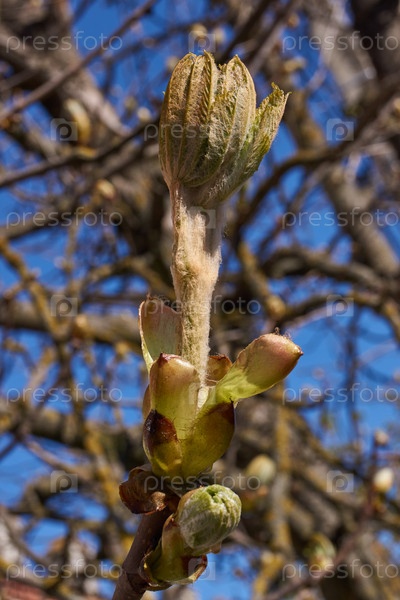 Весна. На городской площади распускаются почки каштана