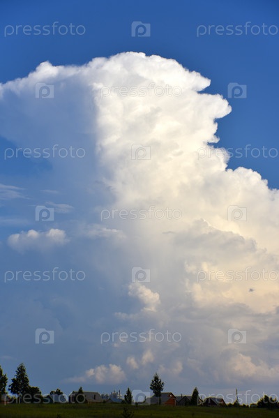 Красивый грозовой пейзаж в сельской местности. Грозовые облака и горизонт с лесом