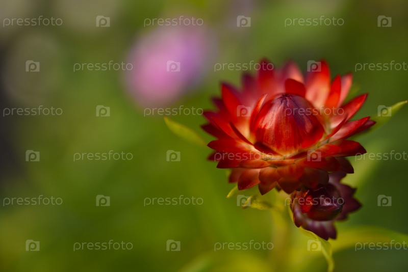 Красный цветок бессмертника на зеленом фоне. Бессмертник Мельница