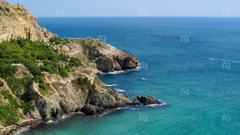 Красивый вид на скалистое побережье и море в солнечный день