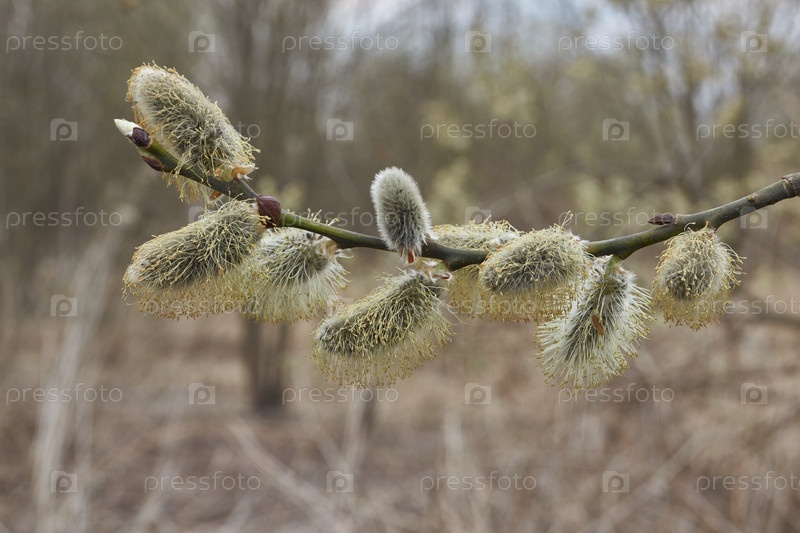 Весна.Ива (лат. Salix) цветет, серьги соцветия распустились