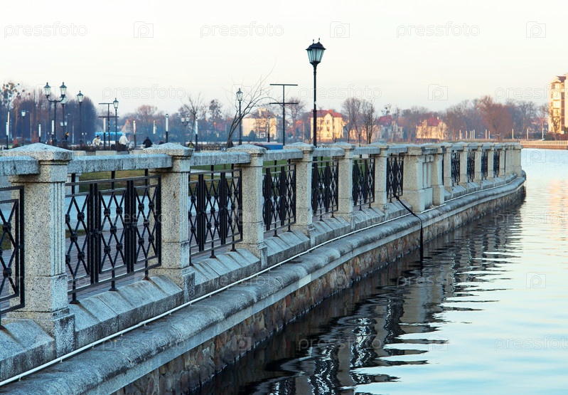Забор из кованого железа на озере, ограждение берега озера
